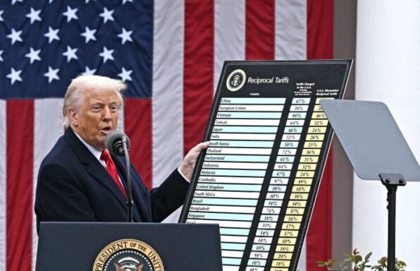 As he announced the tariffs, he held up a chart that showed the tariffs that countries such as India, China, the U.K., and the European Union charge, along with the reciprocal tariffs that these countries will now have to pay.