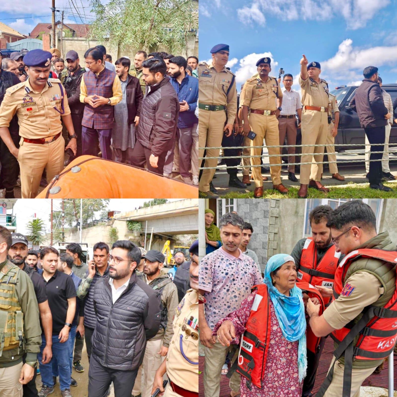 Srinagar, Sep 04 : In response to the ongoing flood-like situation and heavy waterlogging in various parts of the city, Srinagar Police, in close coordination with SDRF and River Police, has activated a comprehensive evacuation and relocation plan to safeguard the lives and well-being of affected citizens.